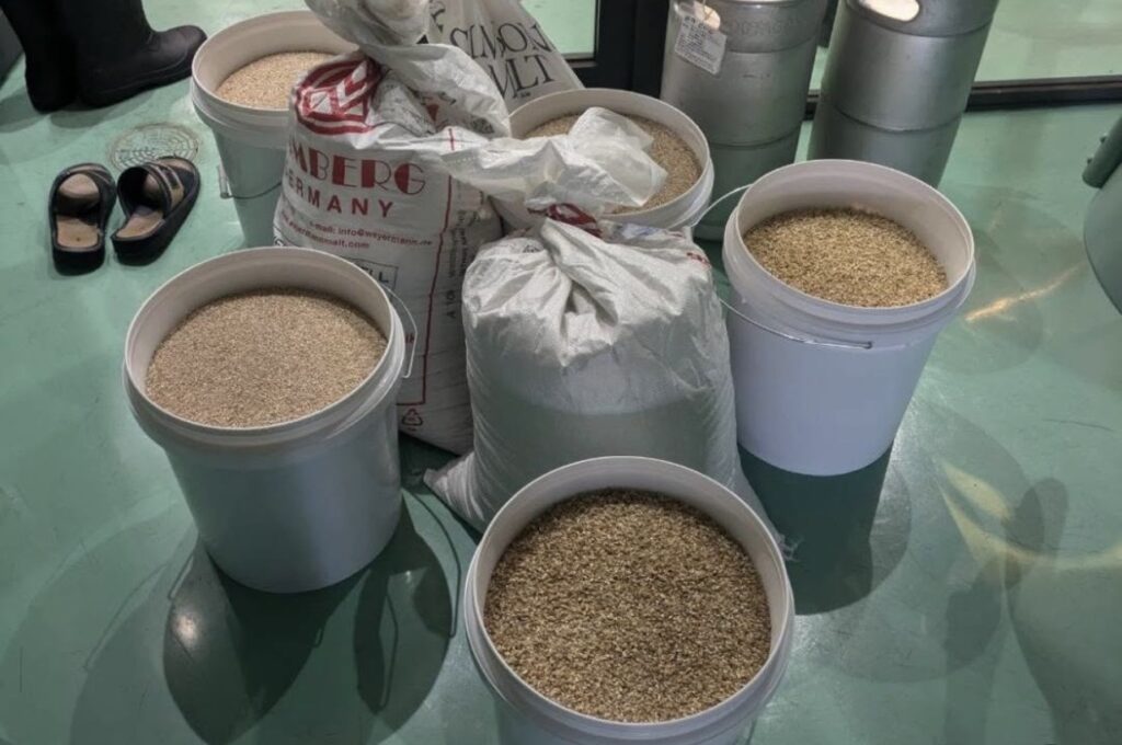 牡蠣殻が取り除かれ、牡蠣殻の成分の入っている水をタンクにいれてそこに大麦小麦も投入!!