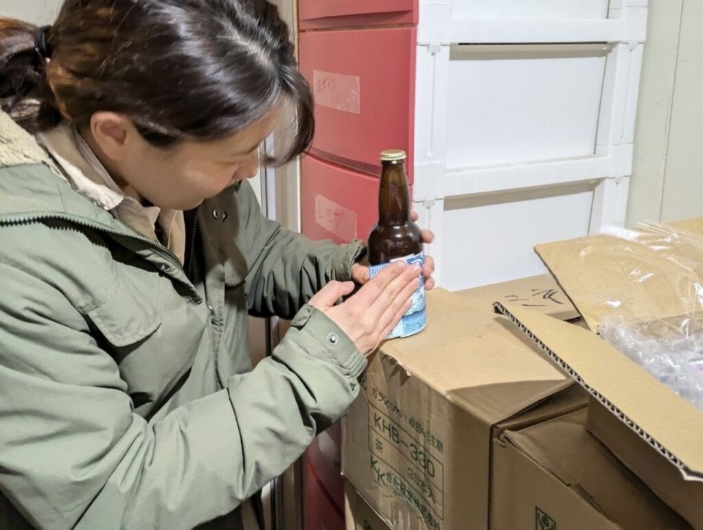 約600本の瓶に一つ一つ心を込めて貼ります。